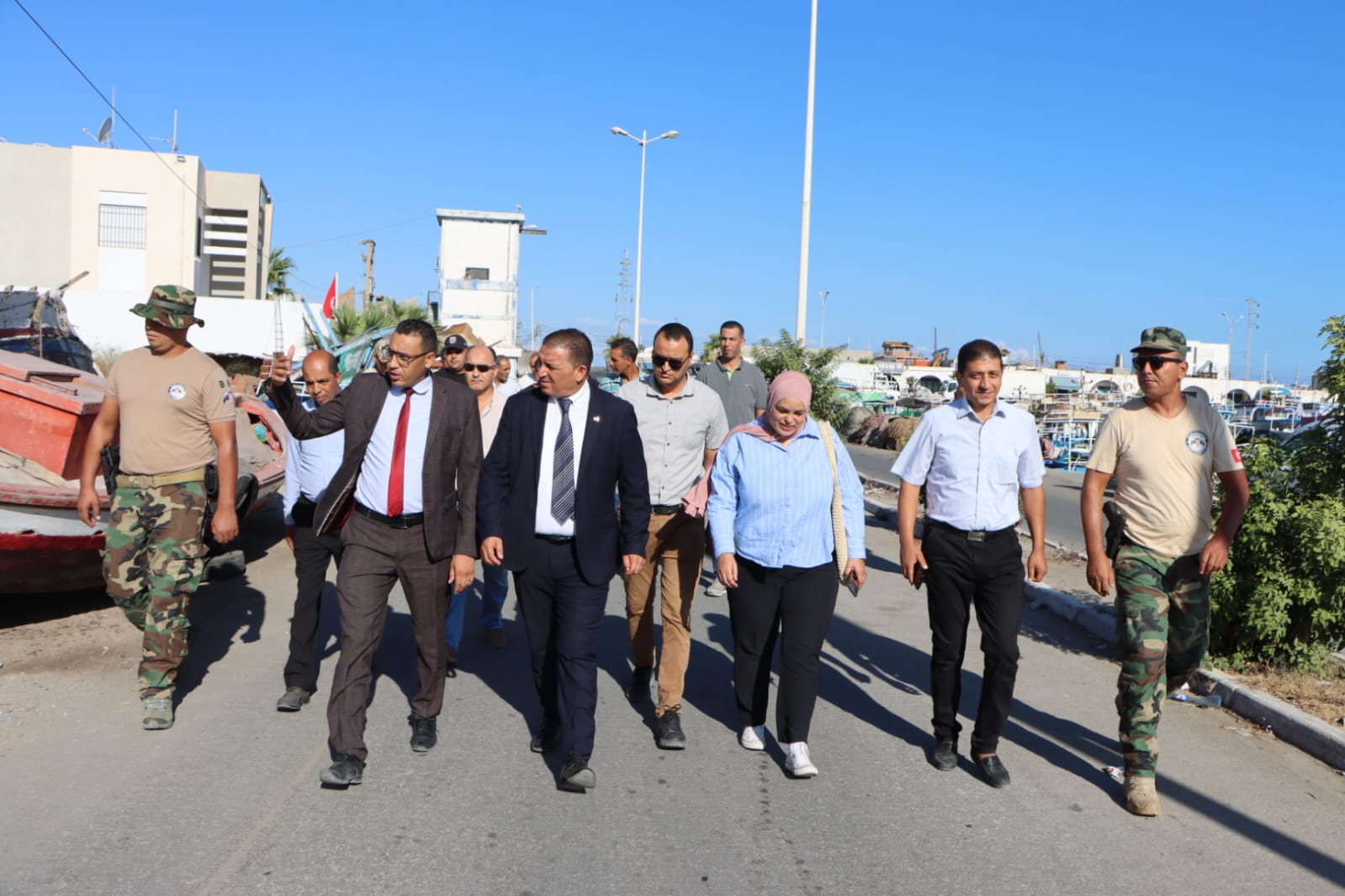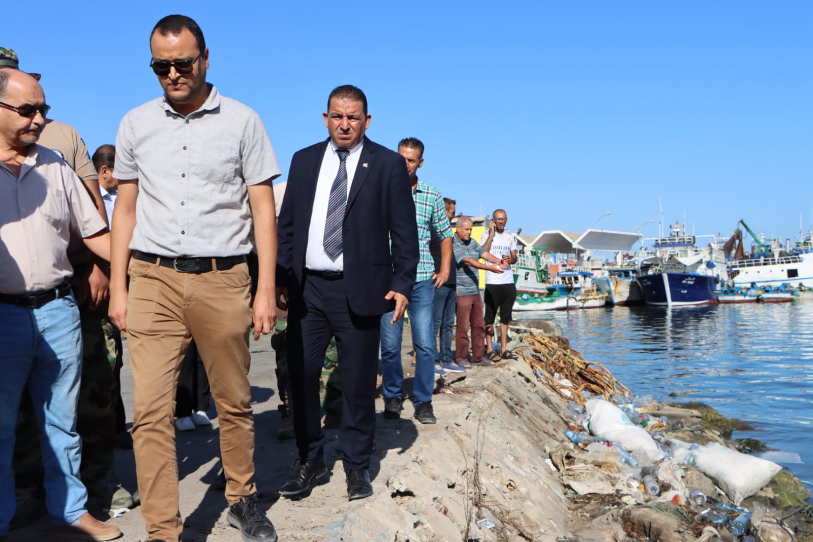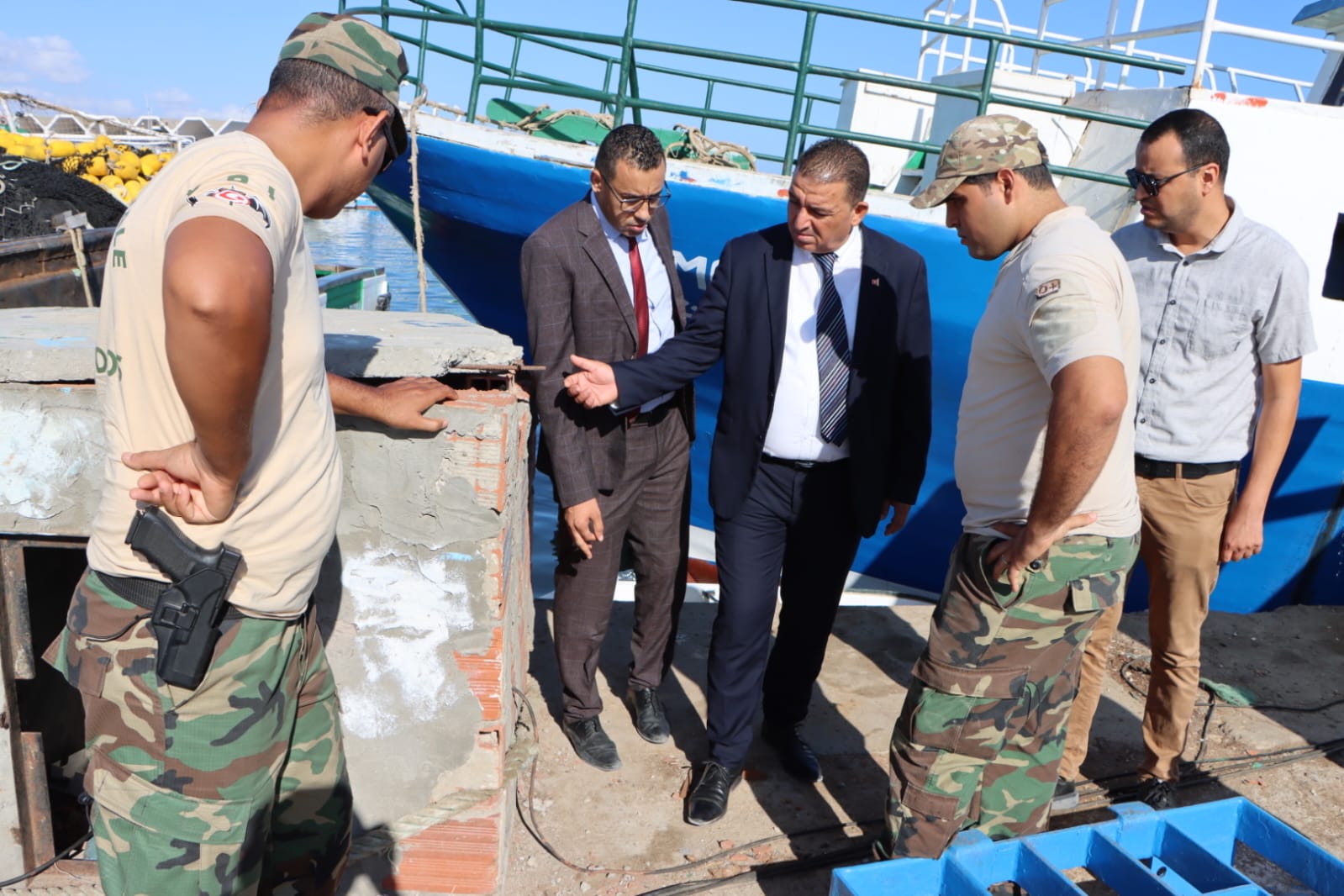 والي المنستير يتابع مشروع توسعة وتهيئة ميناء الصيد البحري بطبلبة.