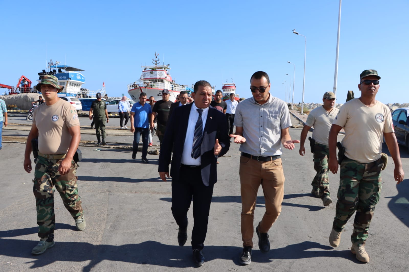 متابعة مشروع توسعة وتهيئة ميناء الصيد البحري بطبلبة إضافة إلى تفقد كافة أرجاء الميناء من حيث النظافة والصيانة والإستغلال كانوا محور زيارة ميدانية للسيّد عيسى موسى والي المنستير أدّاها اليوم السبت 20-09-2025 إلى الميناء المذكور.