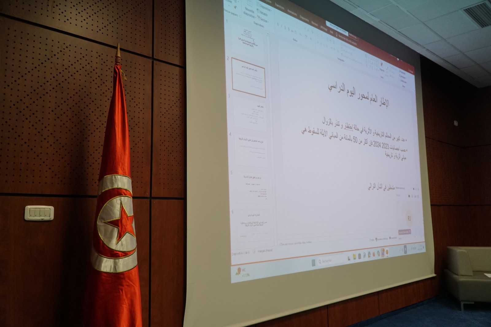 نظّمت الإدارة العامة للتراث تحت إشراف وزارة الشؤون الثقافية، وفي إطار سلسلة من اللقاءات الفكرية والعلمية حول حماية التراث وتثمينه، اليوم الثلاثاء 16-12-2025 بقاعة الشاذلي القليبي بالوزارة يوما دراسيا بعنوان “نحو إرساء مقاربة تشاركية لحماية المباني الأثريّة والتّاريخية المهدّدة بالسقوط”.