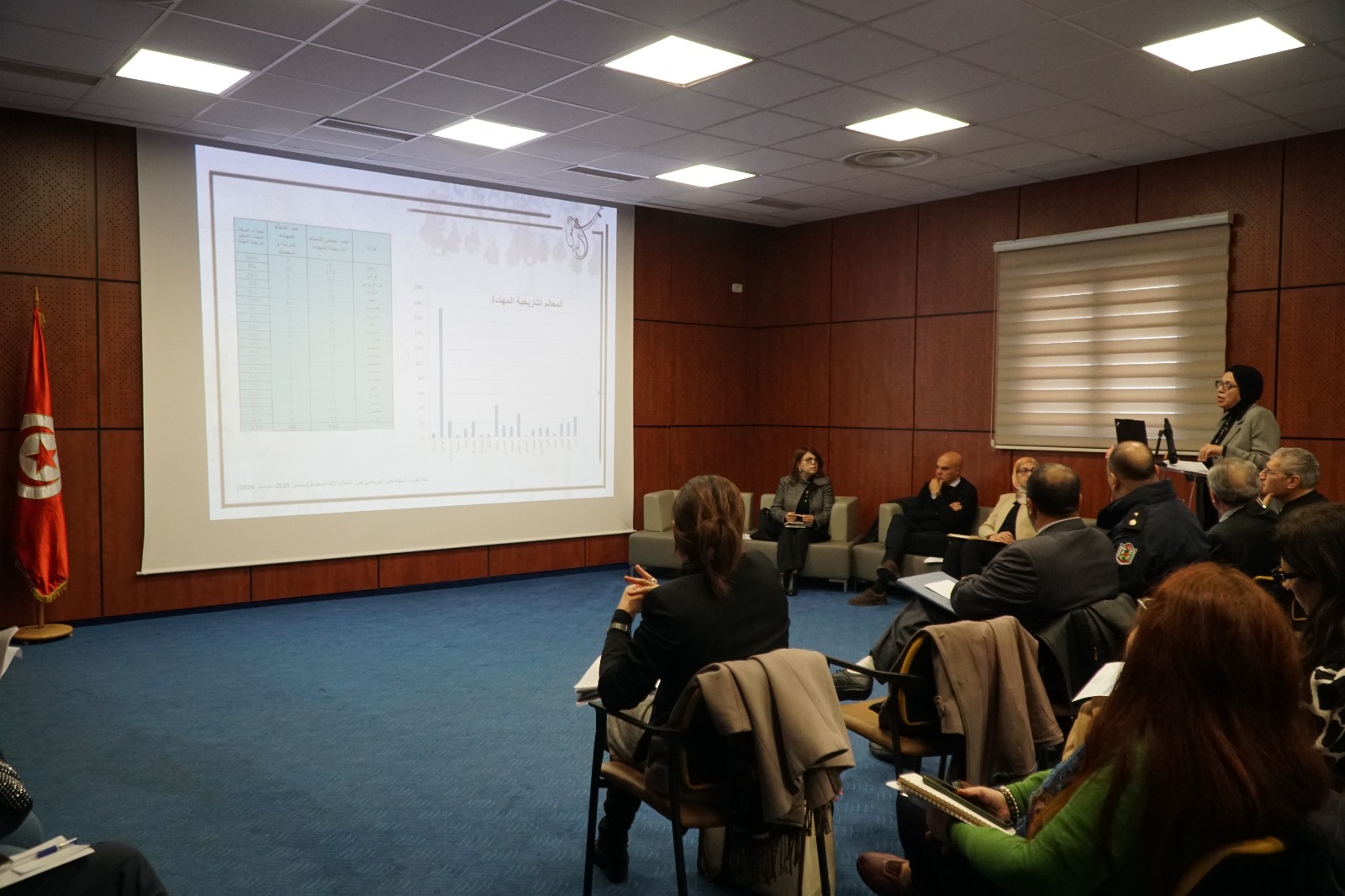 وقد حضر هذا اللقاء مدير المعهد الوطني للتراث السيد طارق البكوش والمديرة العامة لوكالة إحياء التراث والتنمية الثقافية السيدة ربيعة بن فقيرة وعدد من إطارات الوزارة فضلا عن ممثّلي الوزارات المتداخلة والمصالح الحكومية ذات الصلة وممثلي المجتمع المدني وعدد من الصحفيين والإعلاميين.