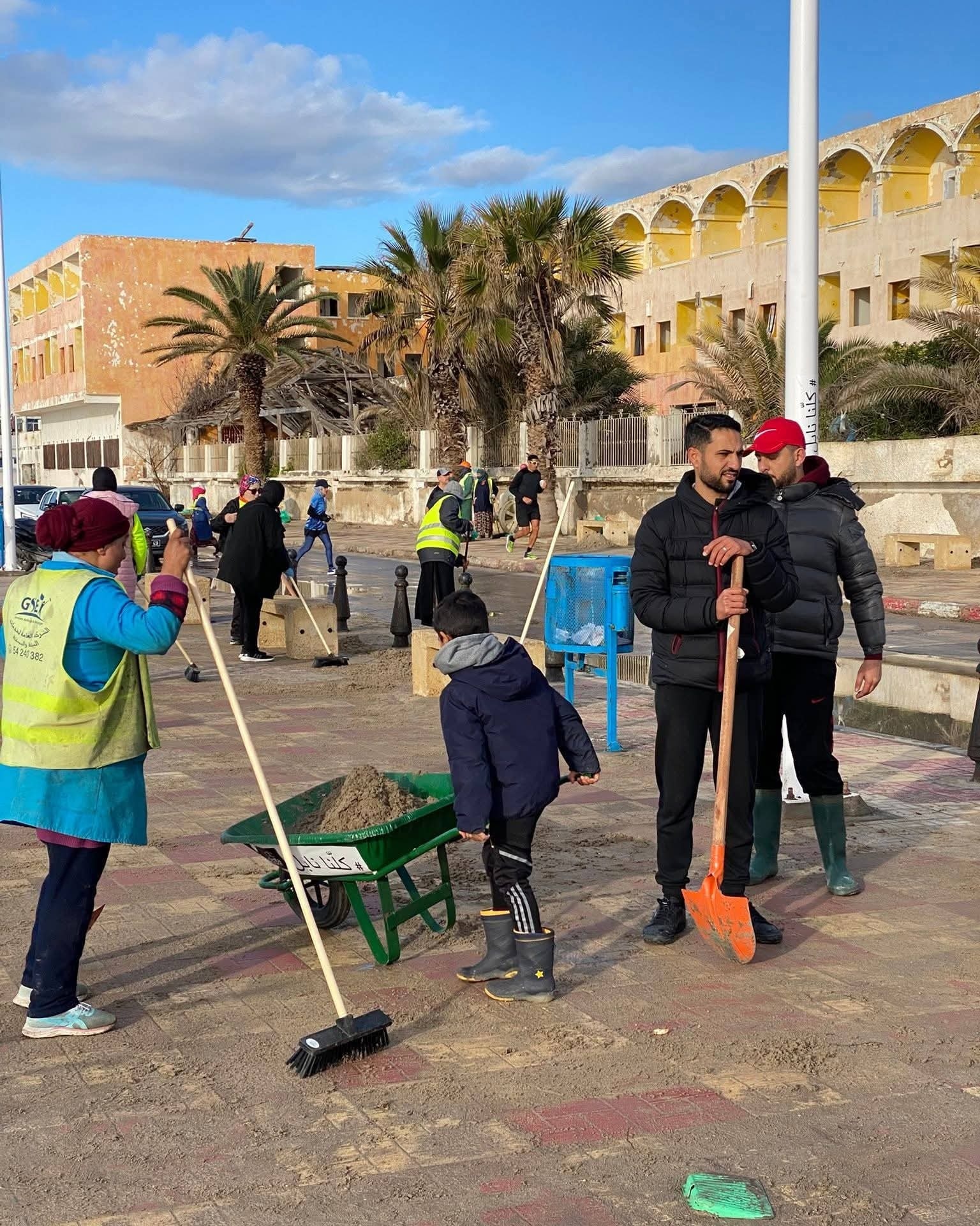 وساهم في هذه الحملة مواطنون من مختلف الاعمار خاصة من النساء ومن الأطفال واشبال الكشافة التونسية تزودوا بقفازات واكياس بلاستيكية وتعاونوا على ملئها بالاعشاب والاتربة والفضلات البلاستيكية، الكل يهرول لوضعها بنقطة تجميع الاكياس بالقرب من شاحنات البلدية.