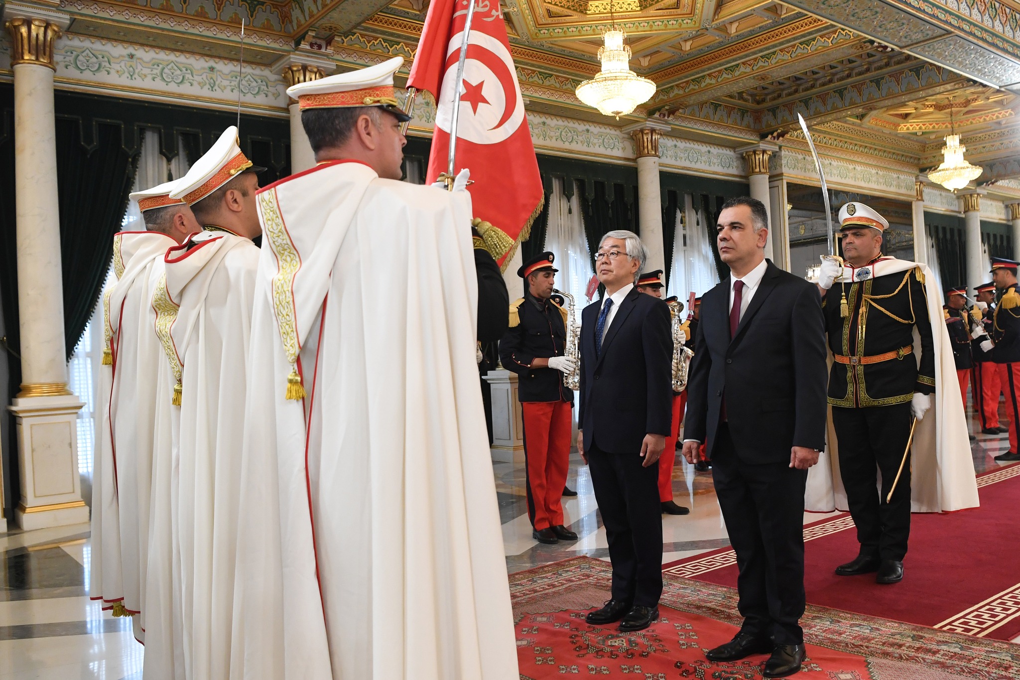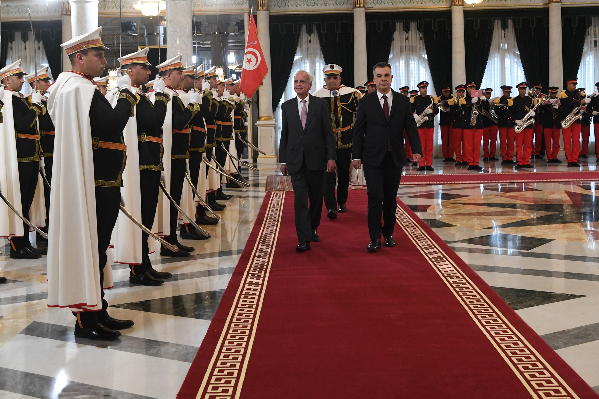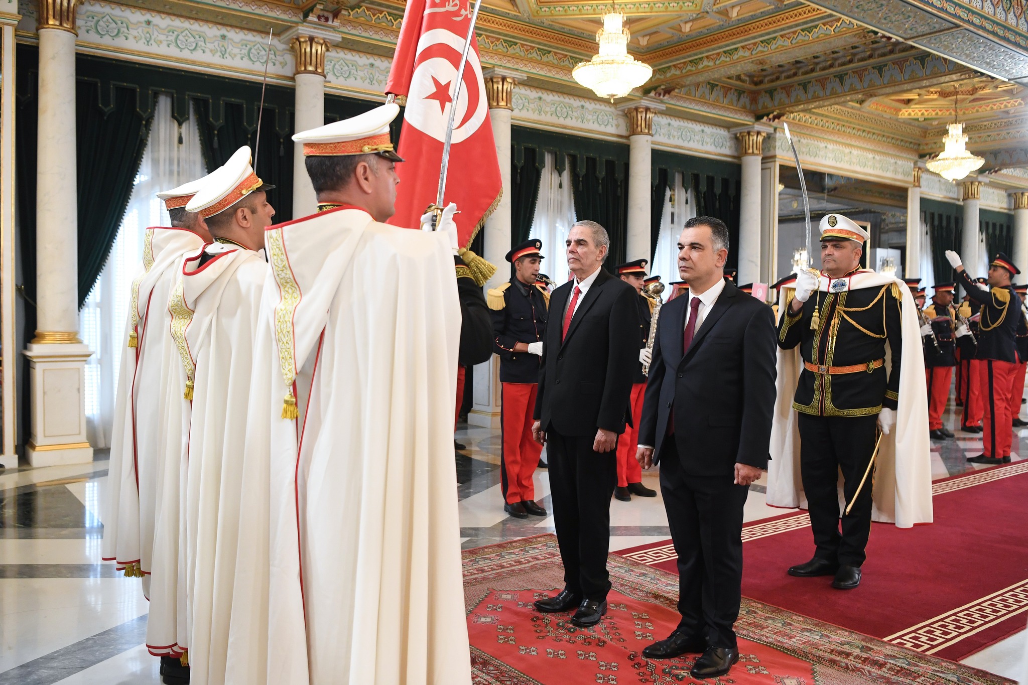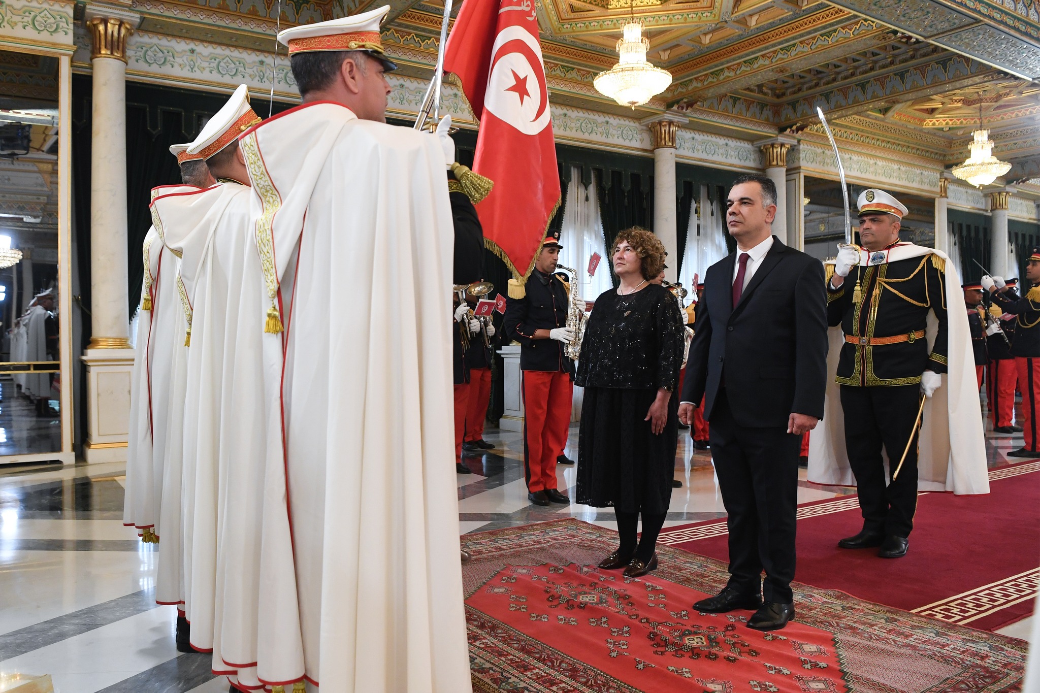 وجرى هذا الموكب بحضور وزير الشؤون الخارجية والهجرة والتونسيين بالخارج محمّد علي النفطي.