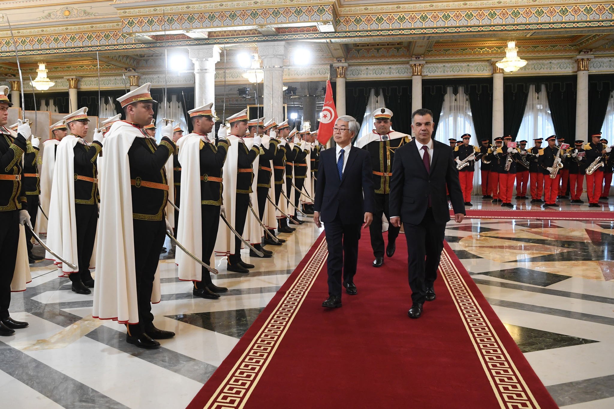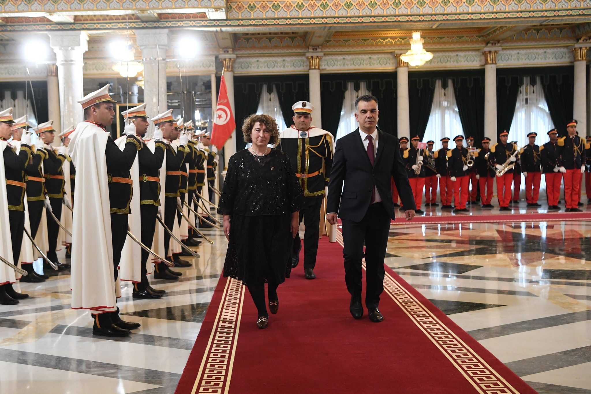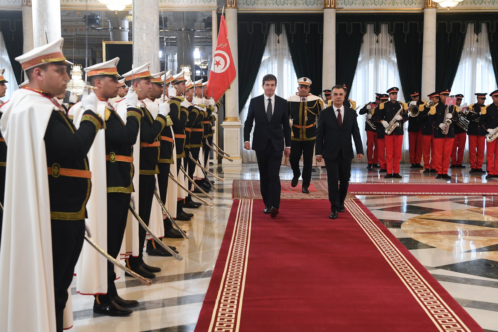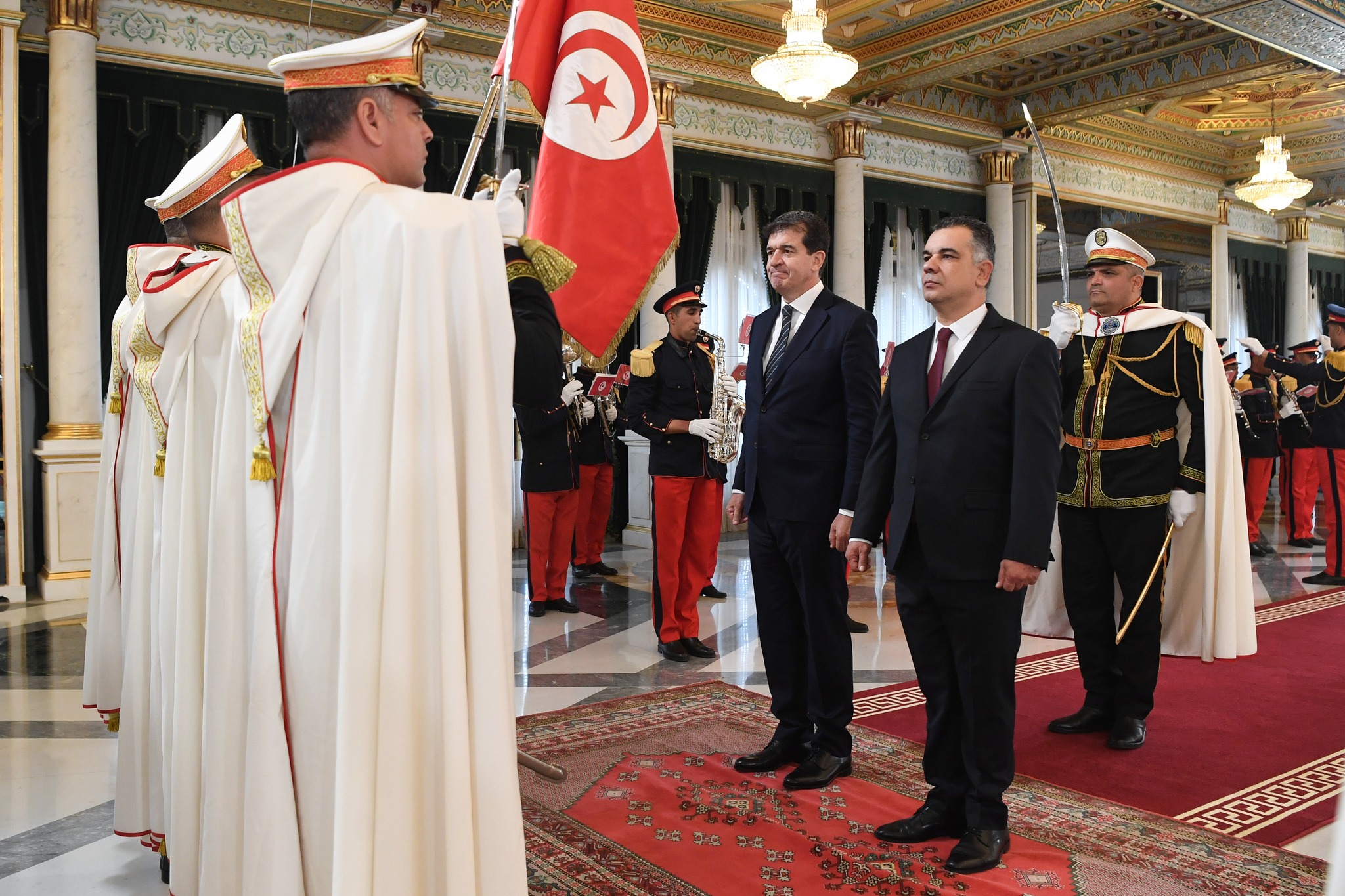 وجرى هذا الموكب بحضور وزير الشؤون الخارجية والهجرة والتونسيين بالخارج محمّد علي النفطي.